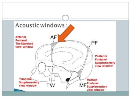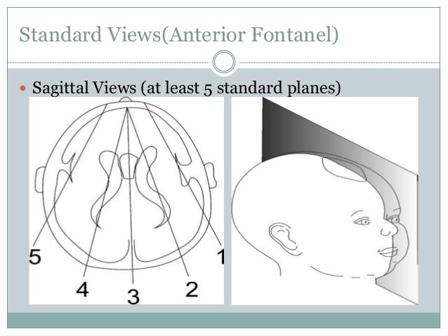 The radiologist will take a standard set of views to assist with consistent visualization of different structures. This will also help to identify any possible abnormalities. The head ultrasound takes a 'slice' through the structure in order to obtain a 2D or 3D image. It is also important to understand that though the images are taken through anterior fontanel, the doctor may decide to use the posterior fontanel in certain circumstances. It is also common to take axial images through the temporal bone.